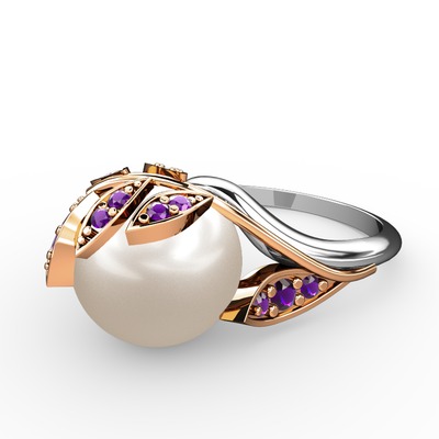 Inci ve ametist 18 ayar rose altın yüzük