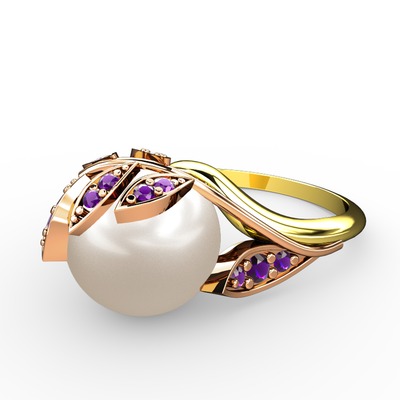 Inci ve ametist 925 ayar rose altın kaplama gümüş yüzük