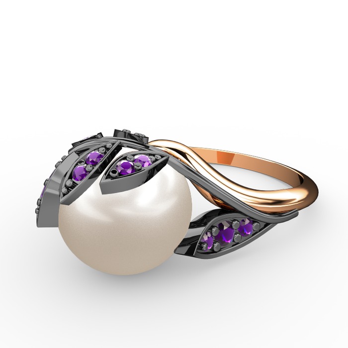 Inci ve ametist 925 ayar siyah rodyum kaplama gümüş yüzük