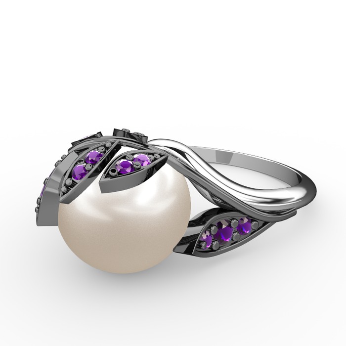 Inci ve ametist 925 ayar siyah rodyum kaplama gümüş yüzük
