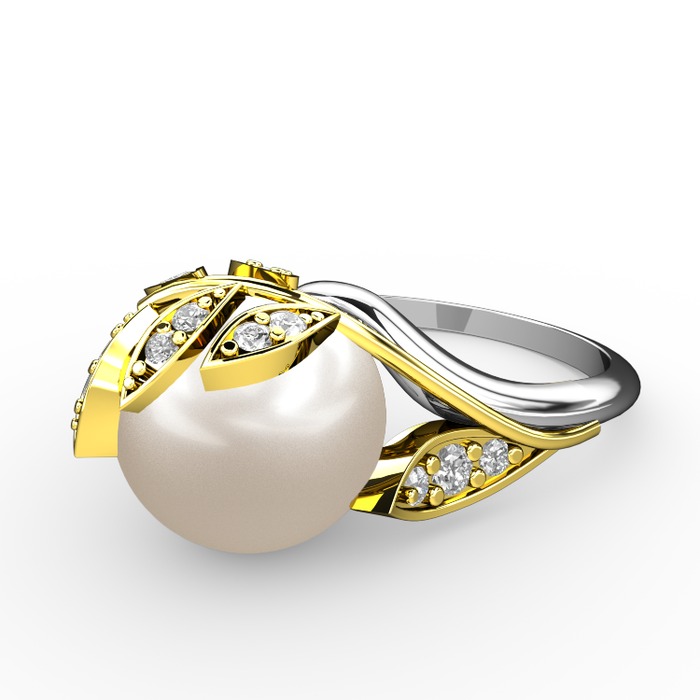 Inci ve beyaz zirkon 18 ayar altın yüzük