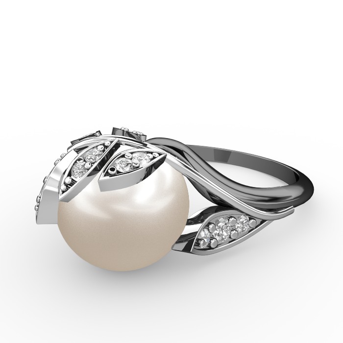 Inci ve beyaz zirkon 18 ayar beyaz altın yüzük