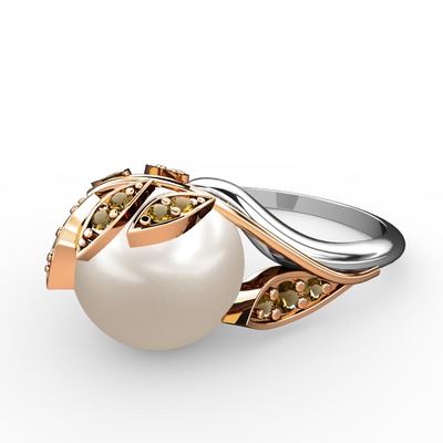 Inci ve dumanlı kuvars 14 ayar rose altın yüzük