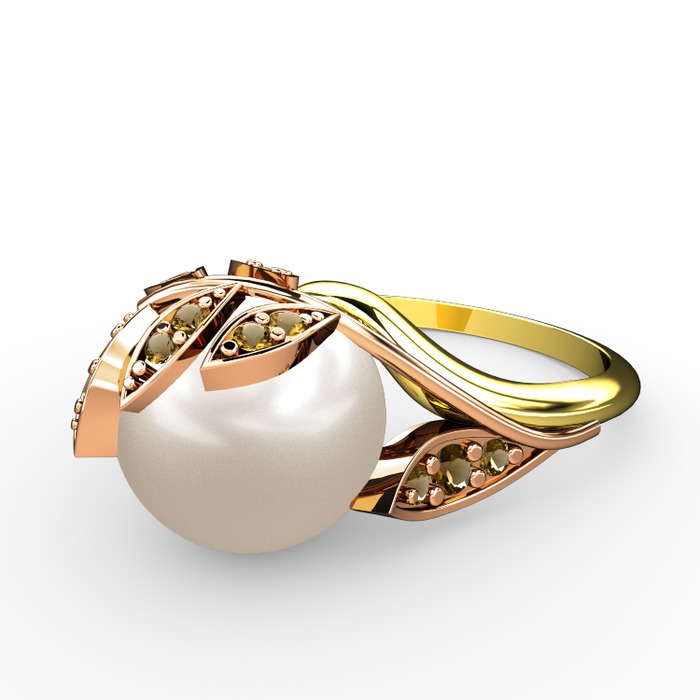Inci ve dumanlı kuvars 925 ayar rose altın kaplama gümüş yüzük