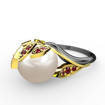 Inci ve garnet 14 ayar altın yüzük