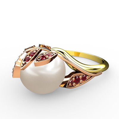 Inci ve garnet 8 ayar rose altın yüzük