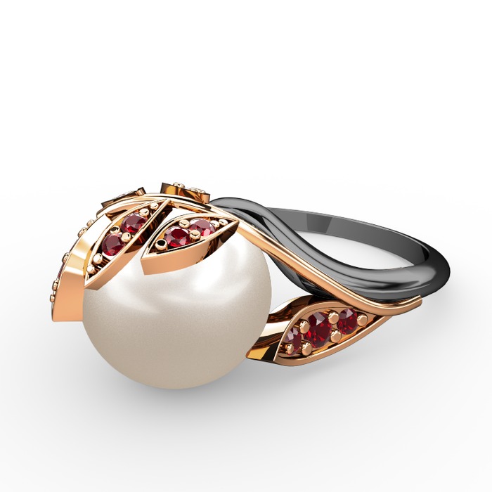 Inci ve garnet 8 ayar rose altın yüzük