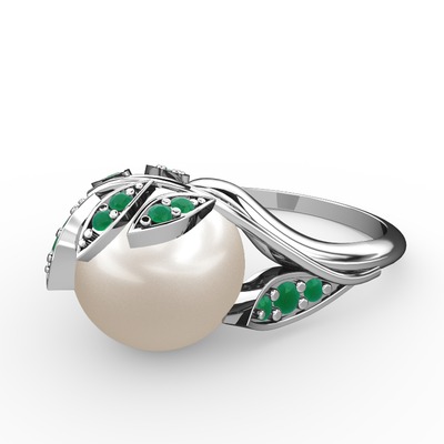 Inci ve kök zümrüt 14 ayar beyaz altın yüzük