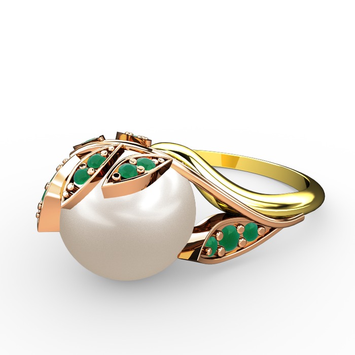 Inci ve kök zümrüt 925 ayar rose altın kaplama gümüş yüzük