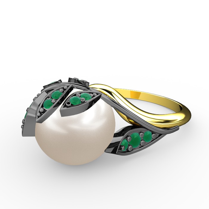 Inci ve kök zümrüt 925 ayar siyah rodyum kaplama gümüş yüzük