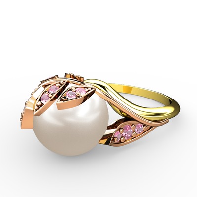 Inci ve pembe kuvars 14 ayar rose altın yüzük