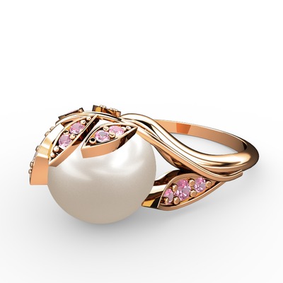 Inci ve pembe kuvars 18 ayar rose altın yüzük