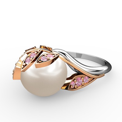 Inci ve pembe kuvars 925 ayar rose altın kaplama gümüş yüzük