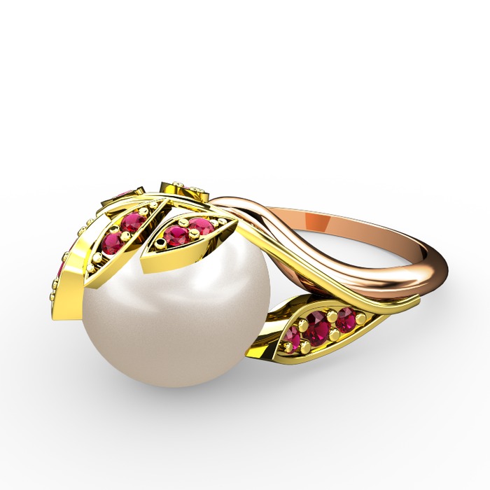 Inci ve rodolit garnet 14 ayar altın yüzük