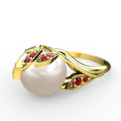Inci ve rodolit garnet 14 ayar altın yüzük