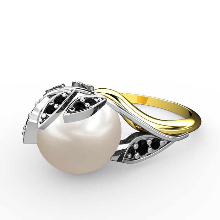 Inci ve siyah zirkon 14 ayar beyaz altın yüzük