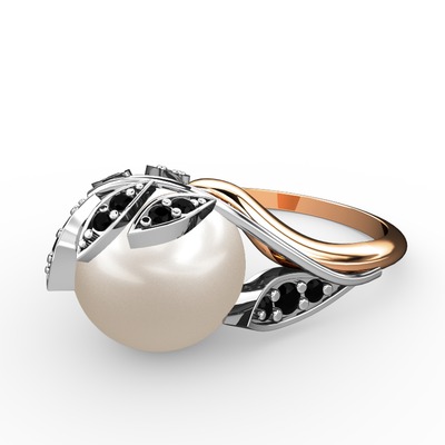 Inci ve siyah zirkon 18 ayar beyaz altın yüzük