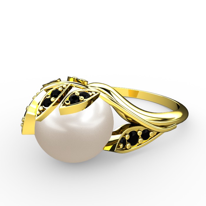 Inci ve siyah zirkon 8 ayar altın yüzük