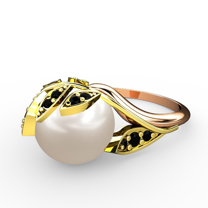 Inci ve siyah zirkon 8 ayar altın yüzük