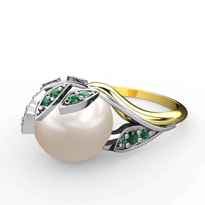Inci ve yeşil kuvars 18 ayar beyaz altın yüzük