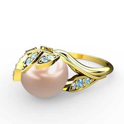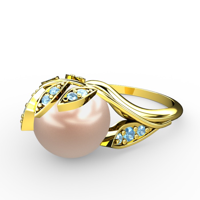 Pembe inci ve akuamarin 18 ayar altın yüzük