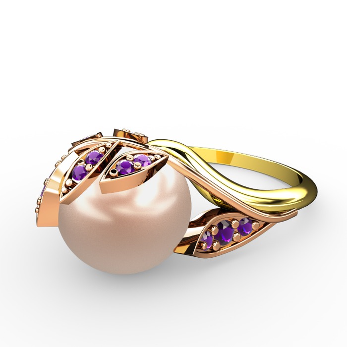 Pembe inci ve ametist 18 ayar rose altın yüzük