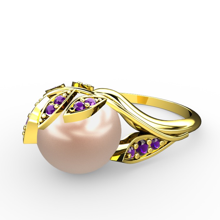 Pembe inci ve ametist 925 ayar altın kaplama gümüş yüzük