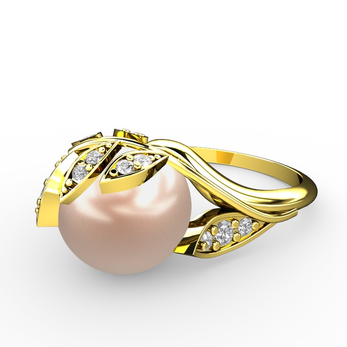 Pembe inci ve beyaz zirkon 18 ayar altın yüzük