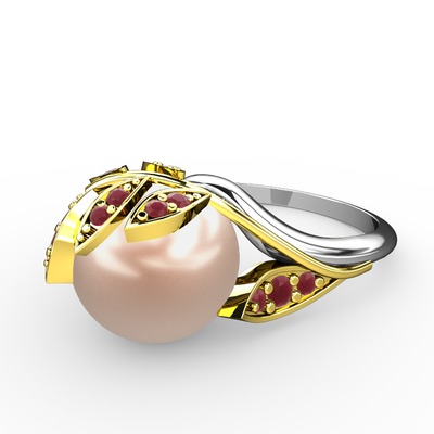 Pembe inci ve kök yakut 18 ayar altın yüzük