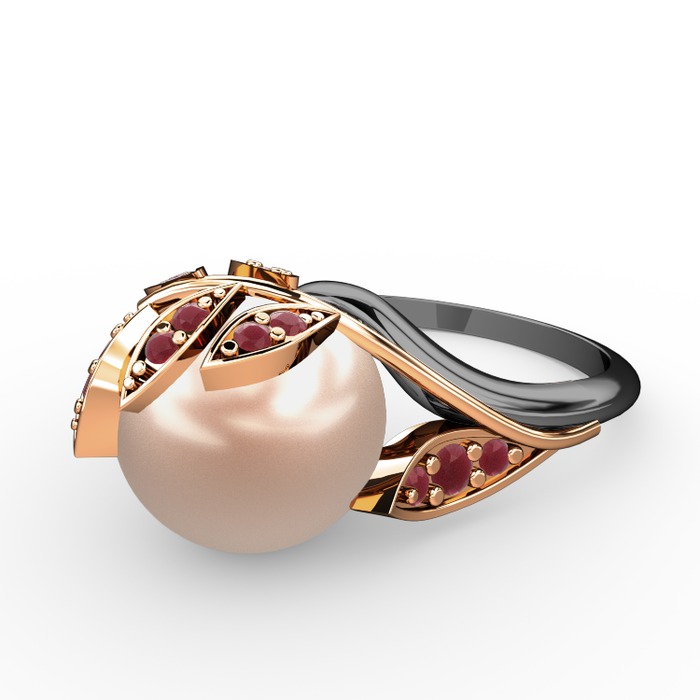Pembe inci ve kök yakut 18 ayar rose altın yüzük