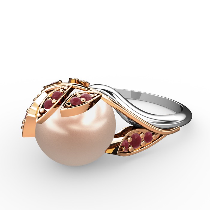 Pembe inci ve kök yakut 8 ayar rose altın yüzük