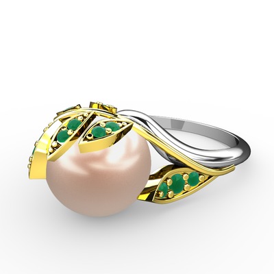 Pembe inci ve kök zümrüt 925 ayar altın kaplama gümüş yüzük