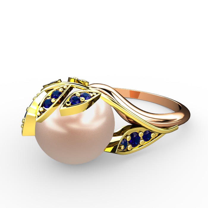 Pembe inci ve lab safir 14 ayar altın yüzük