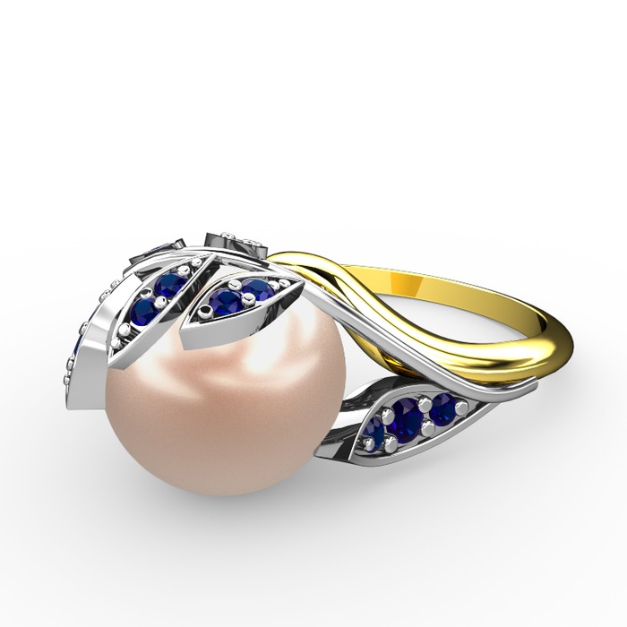 Pembe inci ve lab safir 14 ayar beyaz altın yüzük