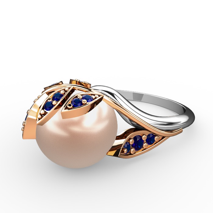 Pembe inci ve lab safir 8 ayar rose altın yüzük