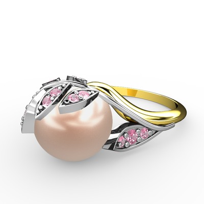 Pembe inci ve pembe kuvars 8 ayar beyaz altın yüzük