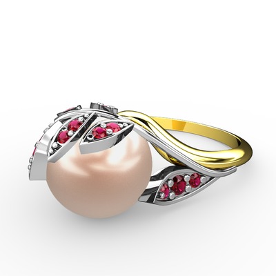 Pembe inci ve rodolit garnet 14 ayar beyaz altın yüzük