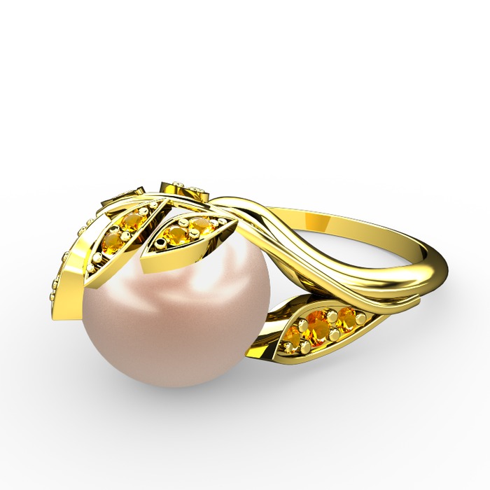 Pembe inci ve sitrin 14 ayar altın yüzük
