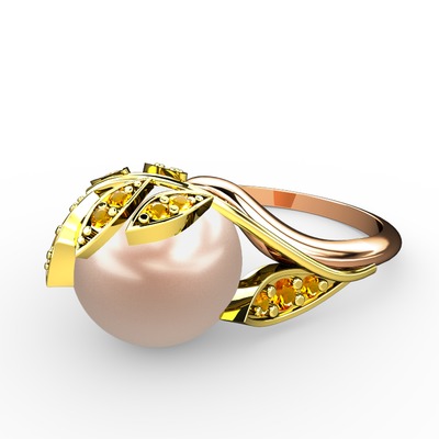 Pembe inci ve sitrin 14 ayar altın yüzük