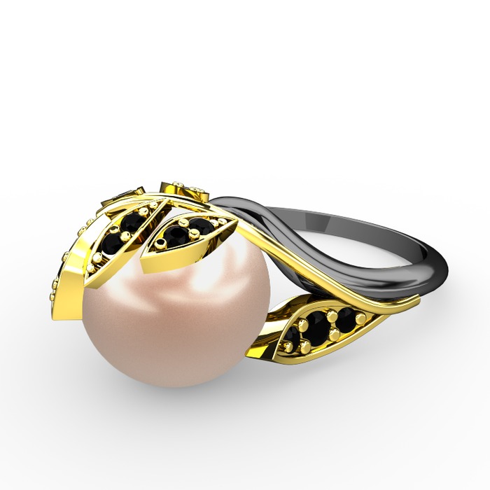 Pembe inci ve siyah zirkon 14 ayar altın yüzük