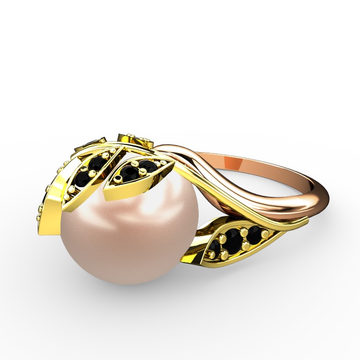 Pembe inci ve siyah zirkon 18 ayar altın yüzük