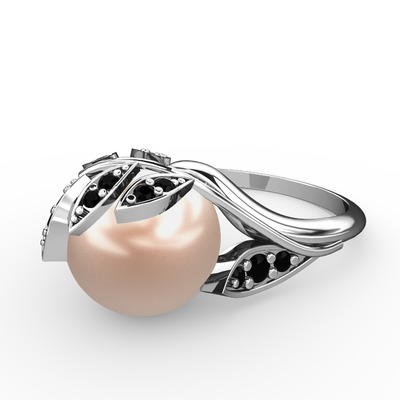 Pembe inci ve siyah zirkon 8 ayar beyaz altın yüzük