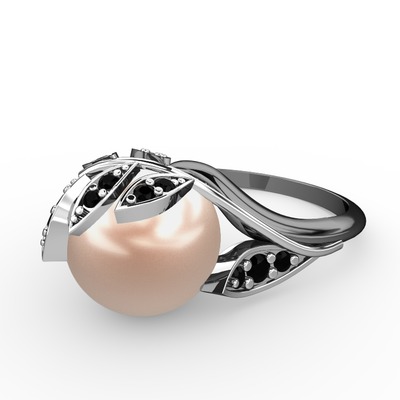 Pembe inci ve siyah zirkon 8 ayar beyaz altın yüzük