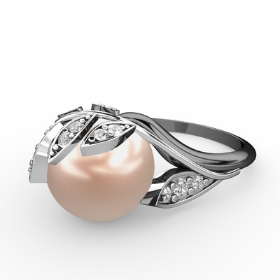 Pembe inci ve swarovski 8 ayar beyaz altın yüzük