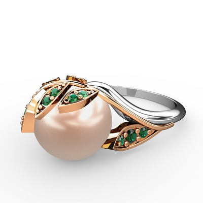 Pembe inci ve yeşil kuvars 18 ayar rose altın yüzük