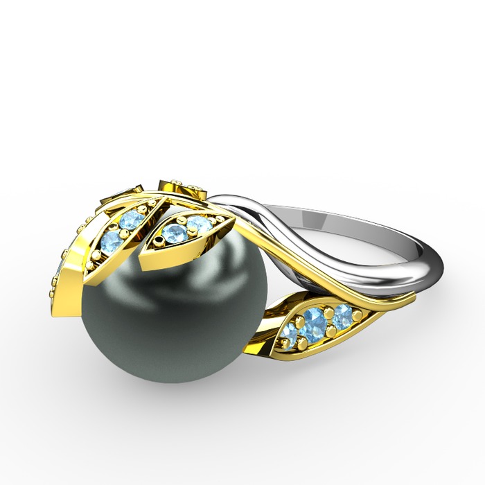 Siyah inci ve akuamarin 18 ayar altın yüzük