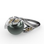Siyah inci ve dumanlı kuvars 14 ayar beyaz altın yüzük