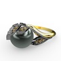 Siyah inci ve dumanlı kuvars 925 ayar siyah rodyum kaplama gümüş yüzük