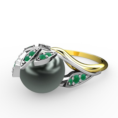Siyah inci ve kök zümrüt 925 ayar gümüş yüzük