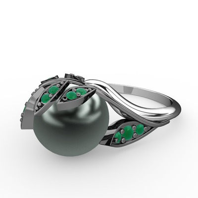 Siyah inci ve kök zümrüt 925 ayar siyah rodyum kaplama gümüş yüzük